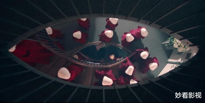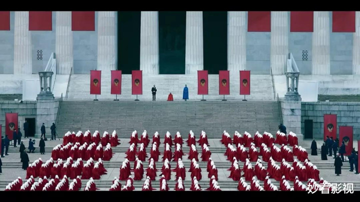 使女鲜红的衣袍到华盛顿特区压抑的灰暗,劳伦斯家中充满艺术感的布局到加拿大明亮的自由之地,每一帧画面都在突出对比强化故事,画面本身已成为一种叙事。